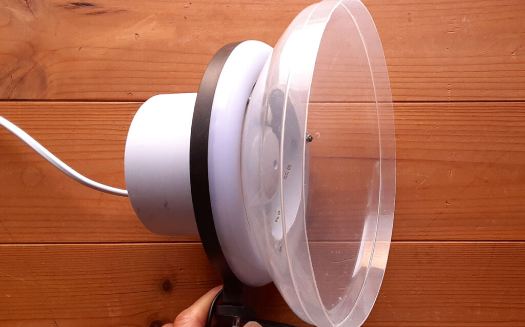 このリングライトの購入に手間取りました。換気扇直径にピタリ合わせられるかがカギ。小さすぎると換気扇に取り付けられませんし、大きすぎると陽光の影になる。リングライトを売っている店舗で実物を見ながら購入したかったのですが、なかなかこれが売っていないのですね。
