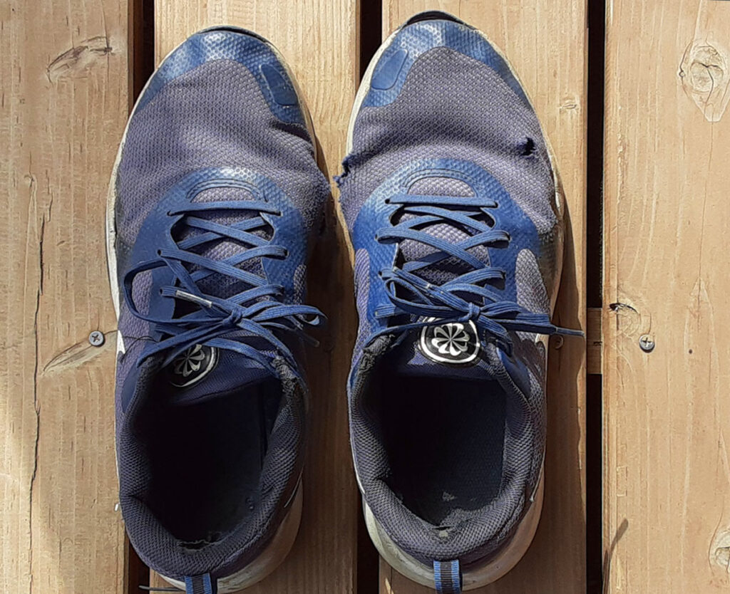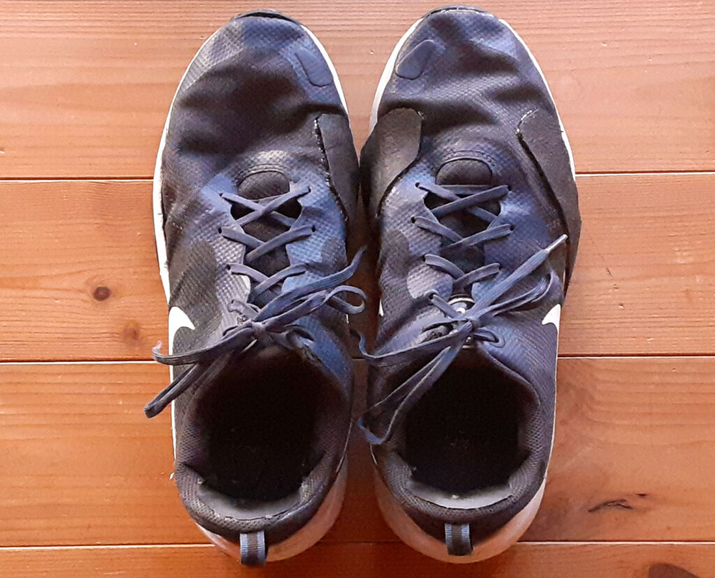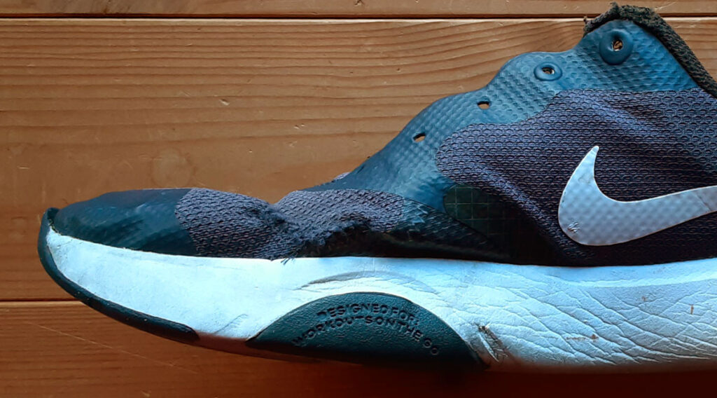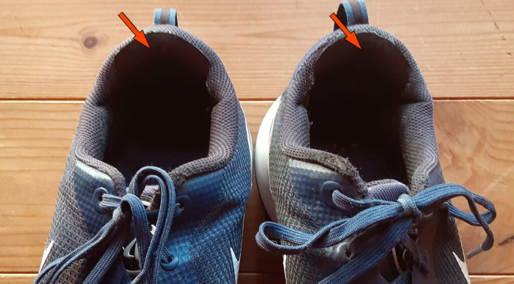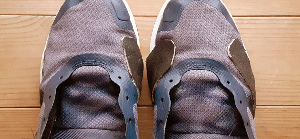 そんなわけで、今のこのよれよれの靴を修理して履き続けることにしました。靴が傷む箇所は人によって違うと思われますが、私の場合ここ。