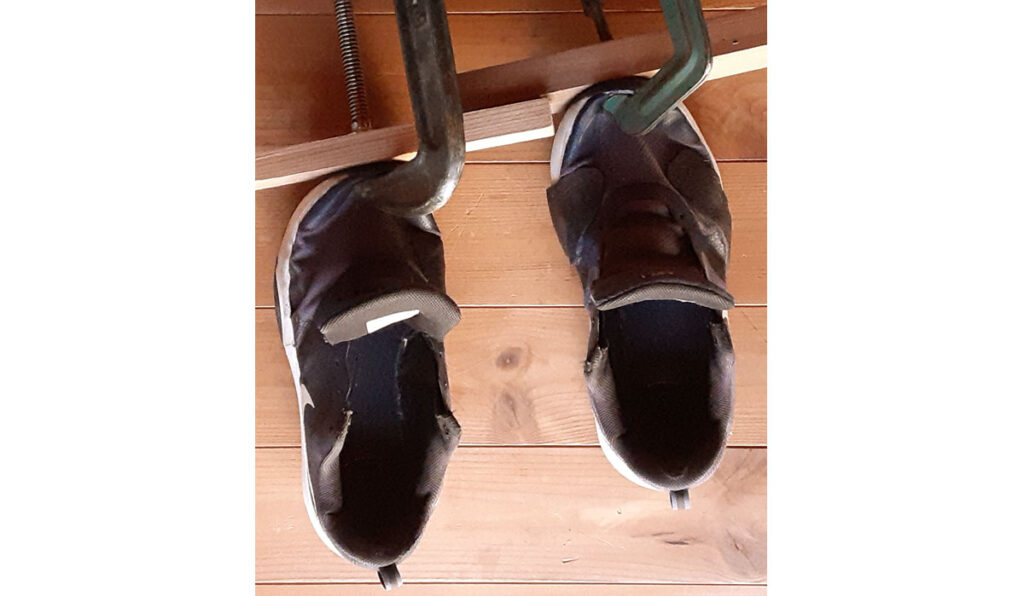 あと踵の内側もボロボロになっていたので薄めの合皮を貼っておきましたよ。完成。