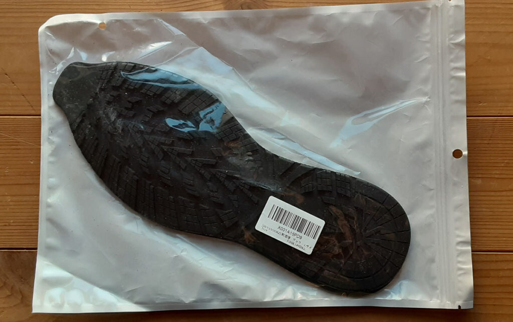靴の裏側は白っぽいのですが、この補修靴底は黒、色の差が有り過ぎますが、目立たない箇所なので気にしません。
